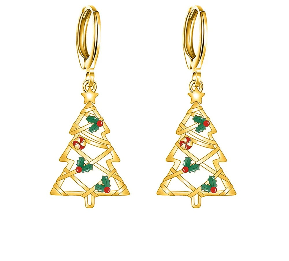 Sterling Silver Drop Christmas Tree Clicker Hoop Earrings