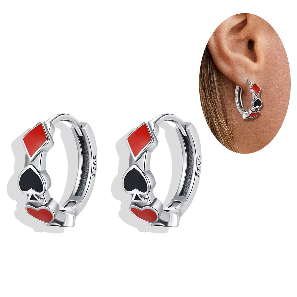 Sterling Silver CZ Lipstick and Purse Hoop drop Clicker earrings.