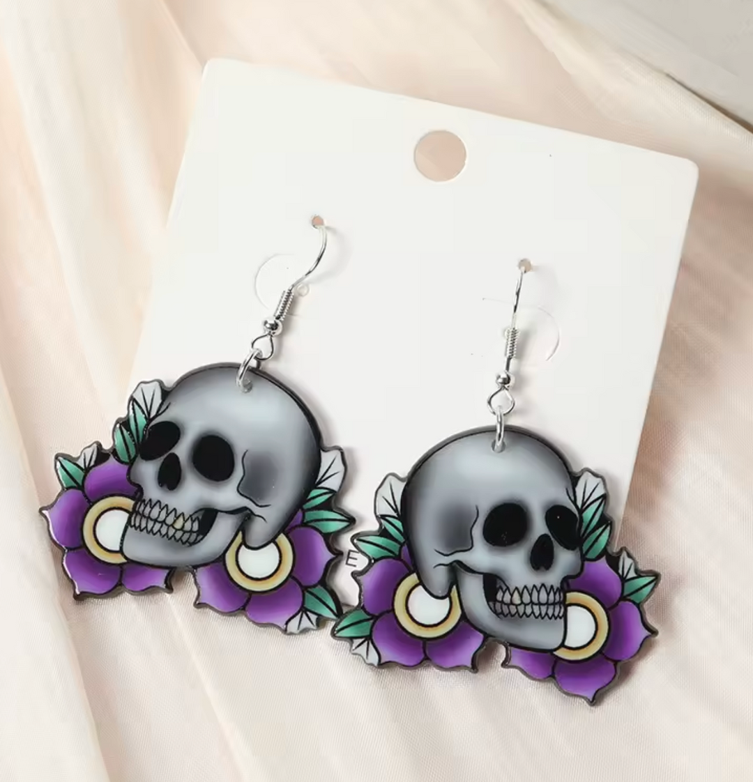 Gothic Punk Halloween Skeleton Dangle Earrings