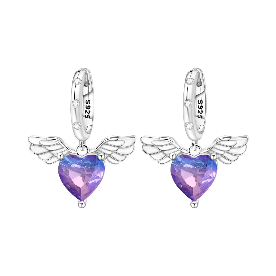 Sterling Silver Paw heart and Bone Cz Hoop Drop Earrings